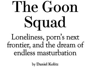 Daniel Kolitz’s Harper’s essay on “gooning” is gruesomely fascinating.