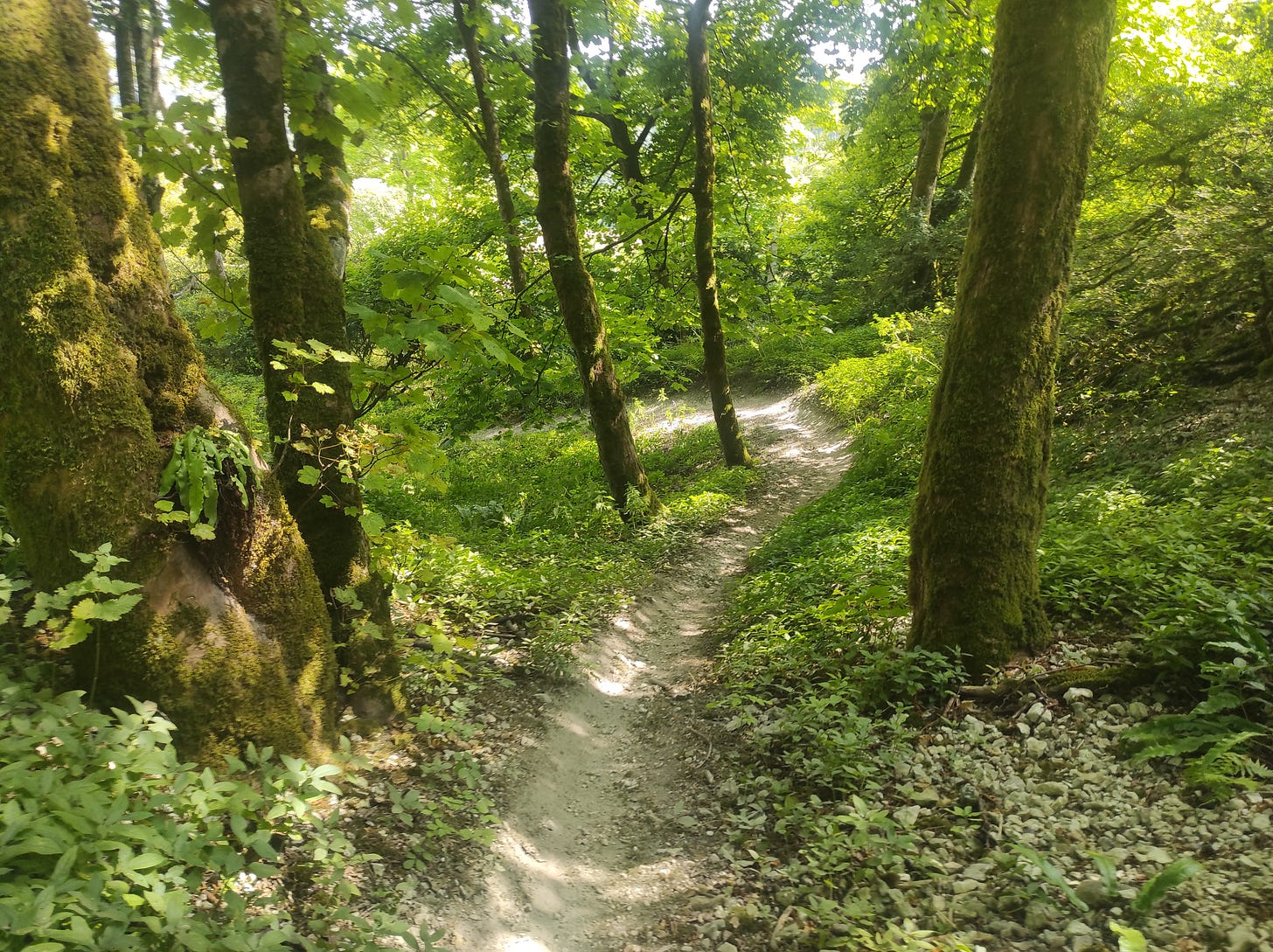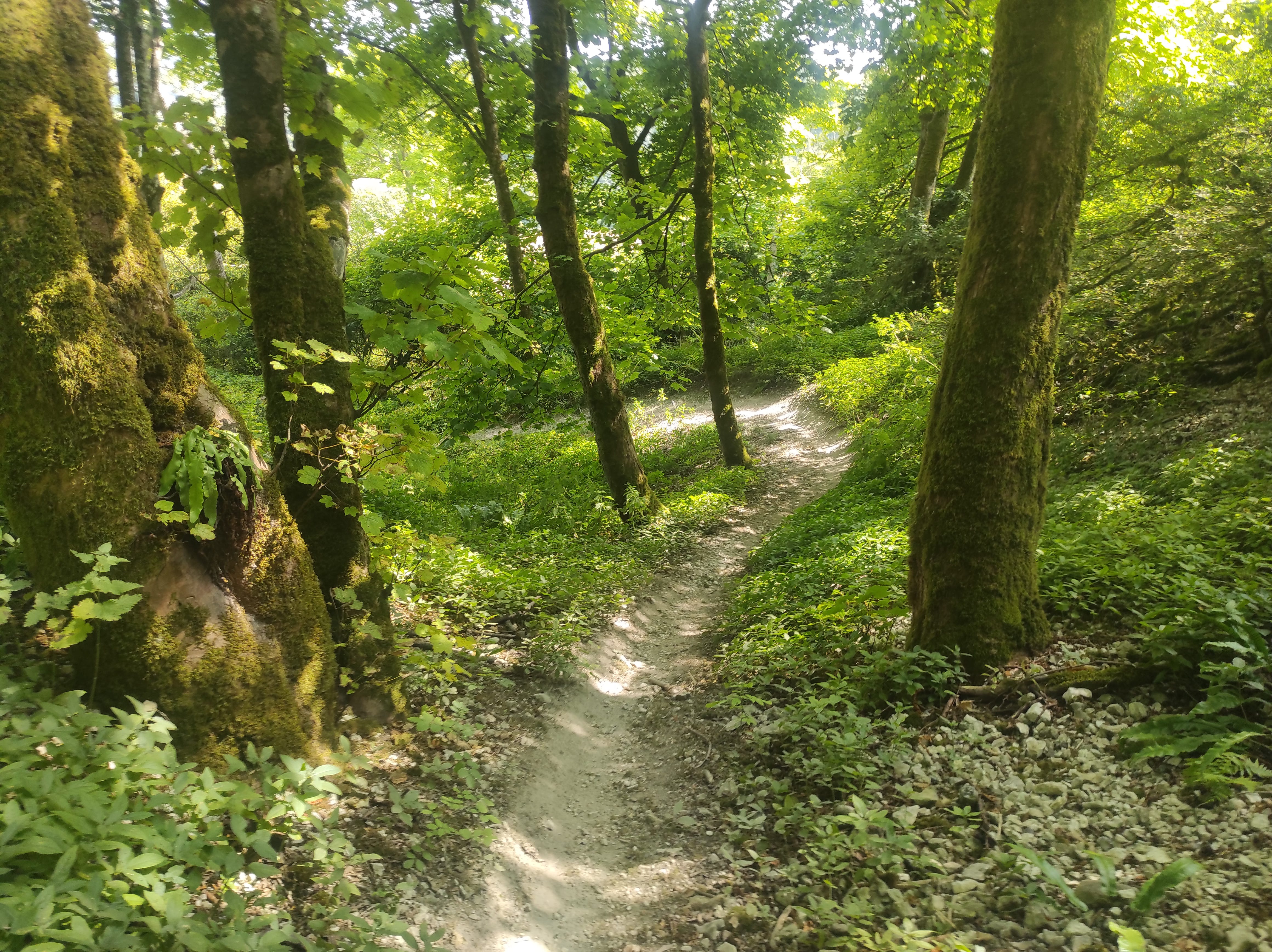 Getting down was no picnic. (A shame because the hill would have been a lovely place for a picnic.) I had to edge down a steep slope of loose stones — grasping at trees and praying that I wouldn’t slip and fall. I had worn my newest jeans for Heaven’s sake. It was 1.45.