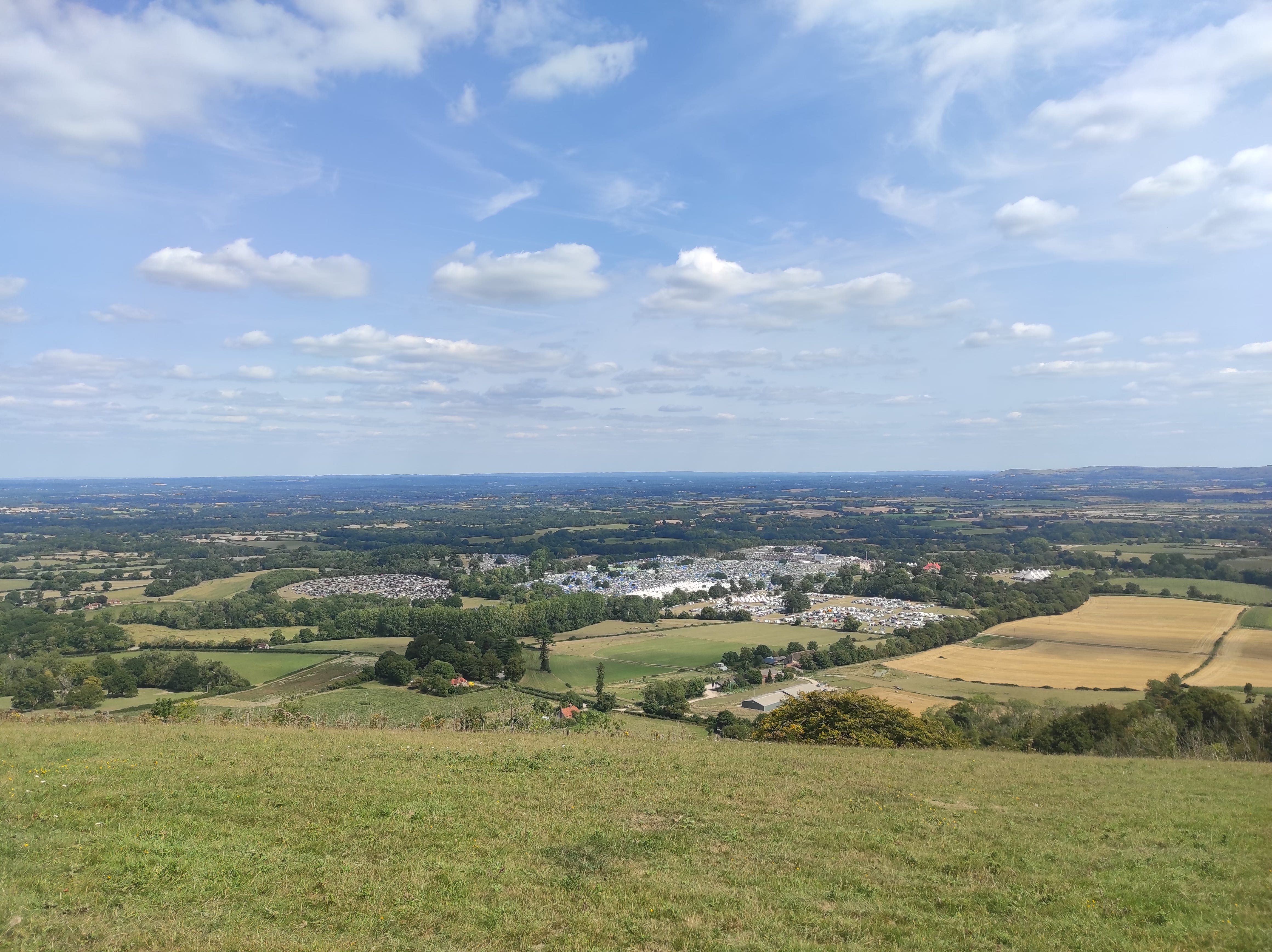 Finally, I reached the top of the hill. Beautiful English fields stretched out before me — bathing in the sunlight. No festival. It was almost 1.30pm and I was meant to be onstage at 2.
