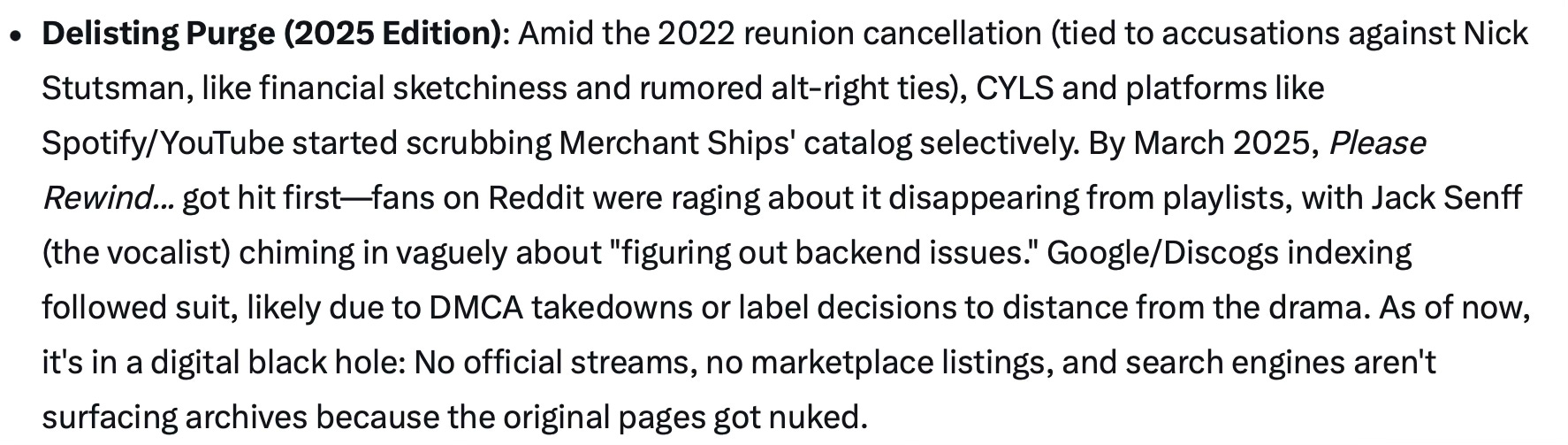 … [is] in a digital black hole: No official streams, no marketplace listings, and search engines aren’t surfacing archives because the original pages got nuked.