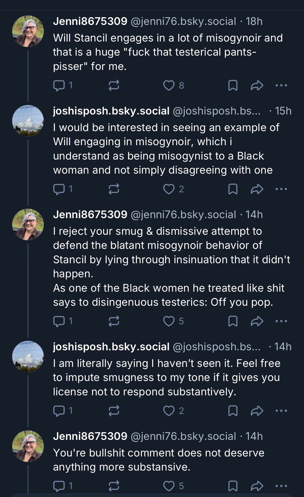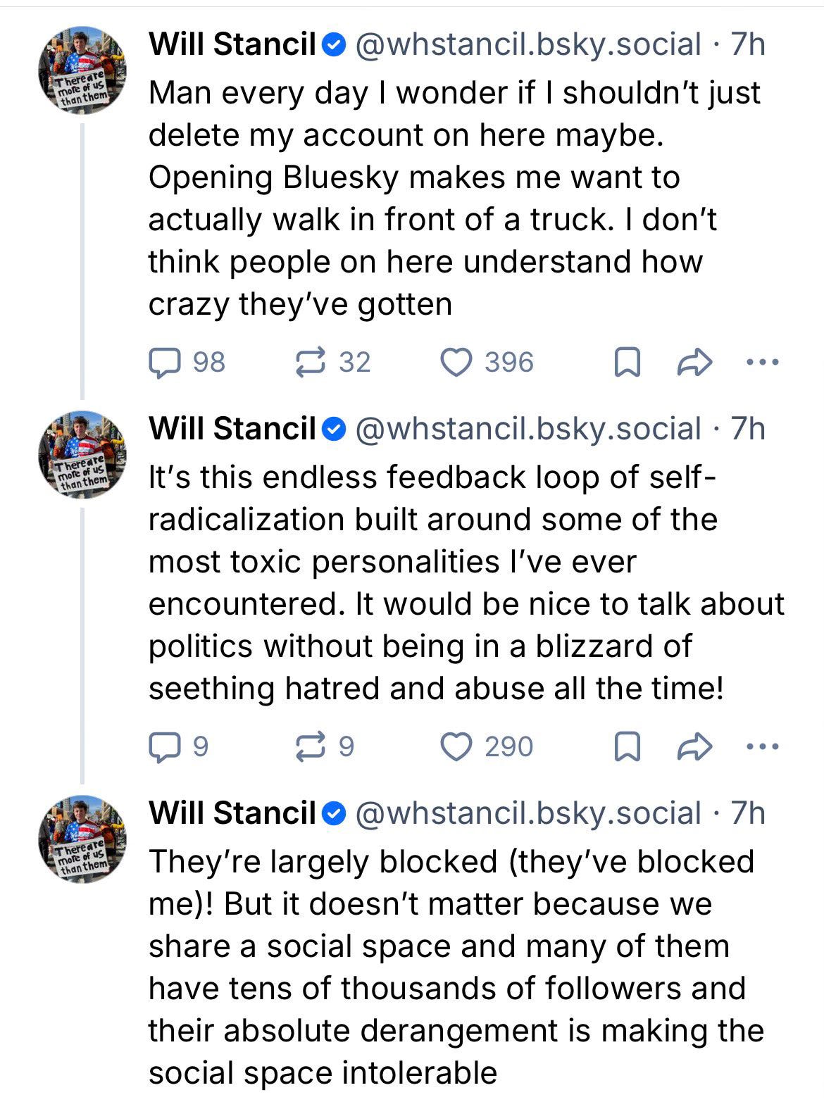 Over on Bluesky — the left-wing competitor to X — a lot of posters are more concerned about signalling their ideological purity than getting stuff done. Stancil, with earnest willingness to compromise in pursuit of progress, has become a target for abuse. As an example, take this accusation of “misgynoir” — which, apparently, means prejudice against black women — which apparently must be accepted without evidence: